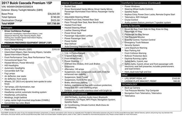 - Vehicle Name: Buick Cascada