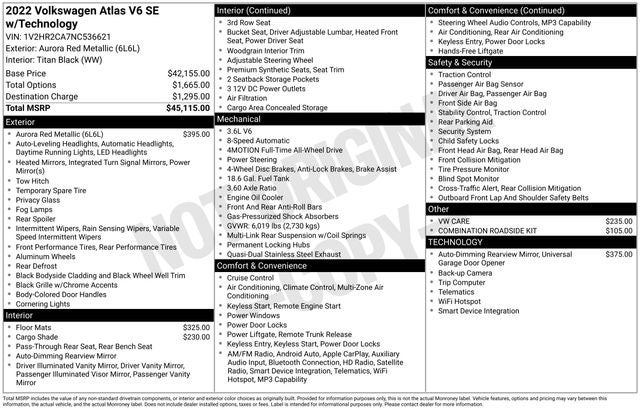 With its exceptional performance, sophisticated style, and impressive array of features, the 2022 Volkswagen Atlas 3.6L V6 SE w/Technology is a compelling choice for discerning SUV buyers. Experience the difference for yourself and schedule a test drive today. We're confident you'll be impressed by the Atlas's capabilities and confident that it's the perfect vehicle to elevate your driving experience.