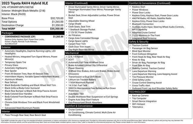 Discover the perfect blend of efficiency, style, and capability with this stunning 2023 Toyota RAV4 Hybrid XLE. Boasting a sleek black exterior and a spacious, well-appointed interior, this SUV is the ultimate combination of form and function.
